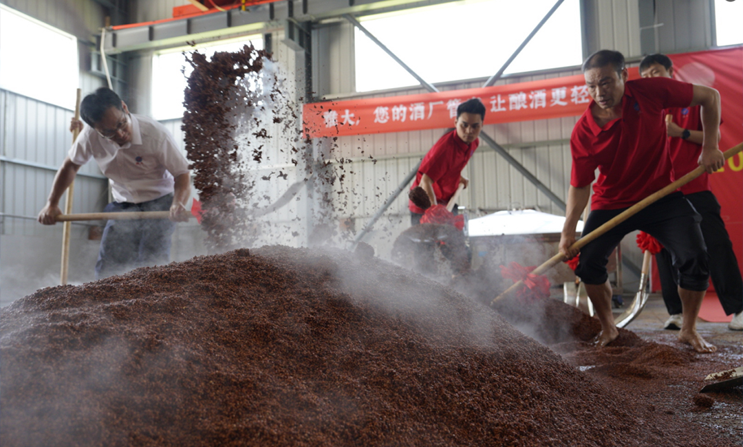 覃佐東院長(zhǎng)俯身細(xì)看糧堆的濕度,連連贊嘆:“溫度與濕度的微妙平衡,正是工藝精髓所在! ”一旁的雅大技術(shù)總監(jiān)蔣建明適時(shí)講解:“下沙是醬香酒生命周期的起點(diǎn),需經(jīng)歷九次蒸煮、八次發(fā)酵, 七次取酒方能成就層次豐富的酒體。”
