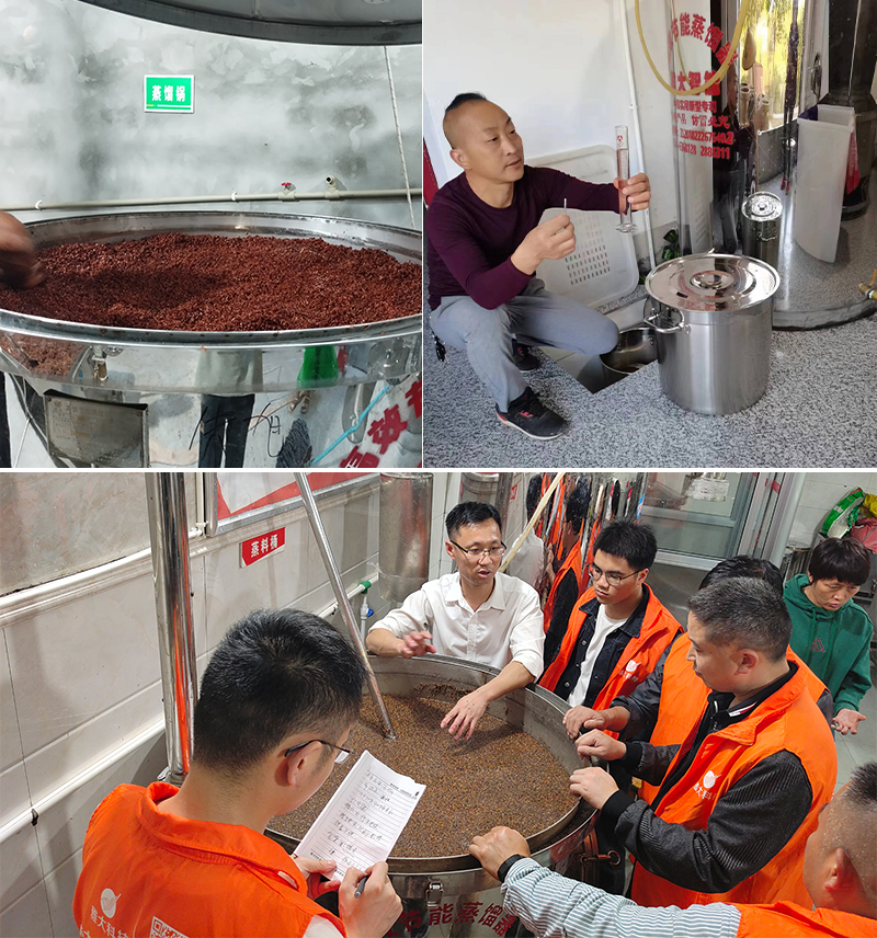 長(zhǎng)沙尋總采用高粱固態(tài)工藝,但出酒率只有35%。蔣老師上門(mén)指導(dǎo)后,發(fā)現(xiàn)兩個(gè)關(guān)鍵問(wèn)題:一是發(fā)酵好的酒醅太濕,二是上甑方法不對(duì)導(dǎo)致高度酒少、低度酒多。經(jīng)過(guò)技術(shù)改進(jìn),出酒率提升到了58%,每100斤糧食多賺300多元!