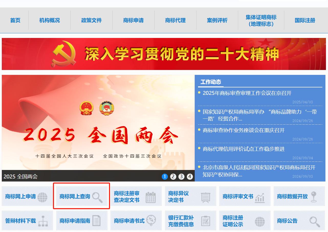 登錄國家知識產(chǎn)權(quán)局商標(biāo)局官網(wǎng):