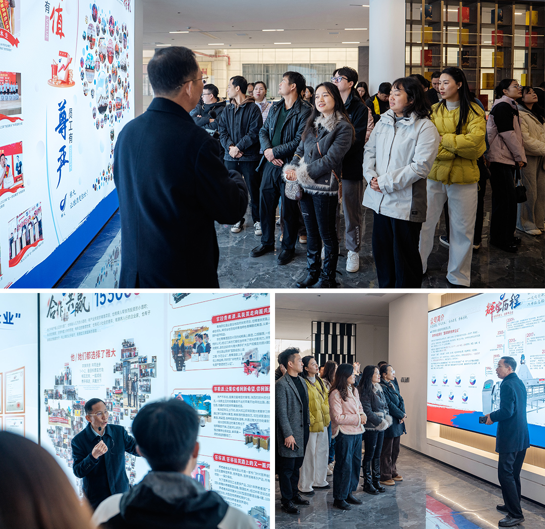 在交流中,胡順開董事長向?qū)W員們分享了公司27年來的發(fā)展心得。我們始終秉持 "幫助客戶釀好酒" 的服務(wù)理念,為客戶提供釀酒設(shè)備、酒曲和釀酒 技術(shù)支持。多年來,我們陪跑全國各地客戶共同成長,見證他們利用當(dāng)?shù)刎S富的糧食、雜糧、 水果、高價值蔬菜、農(nóng)產(chǎn)品資源,雙方共同努力, 成功研發(fā)出各種特色的酒品。我們向?qū)W員們介紹了一些合作案例,希望能為農(nóng)產(chǎn)品 及果蔬深加工提供有益參考。
